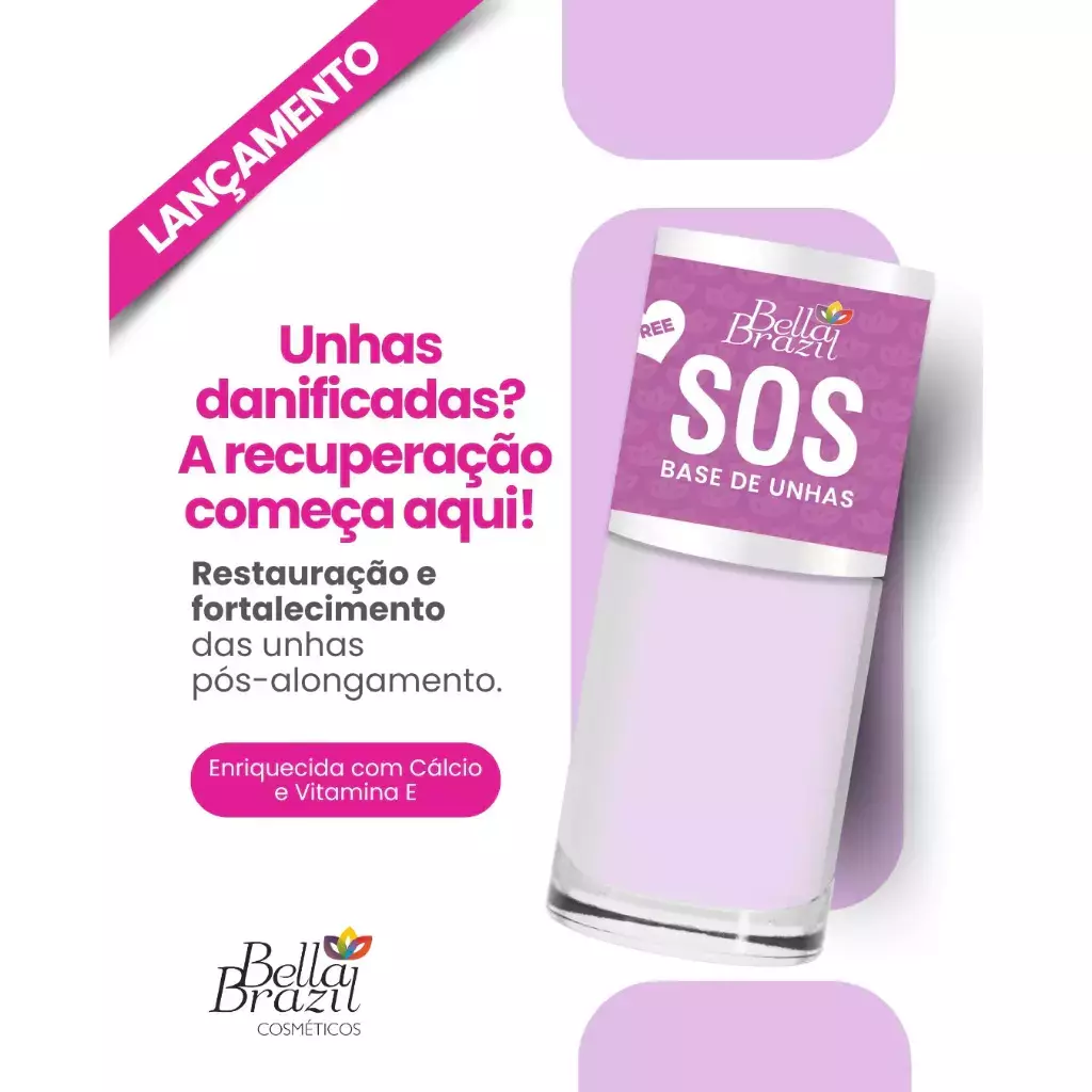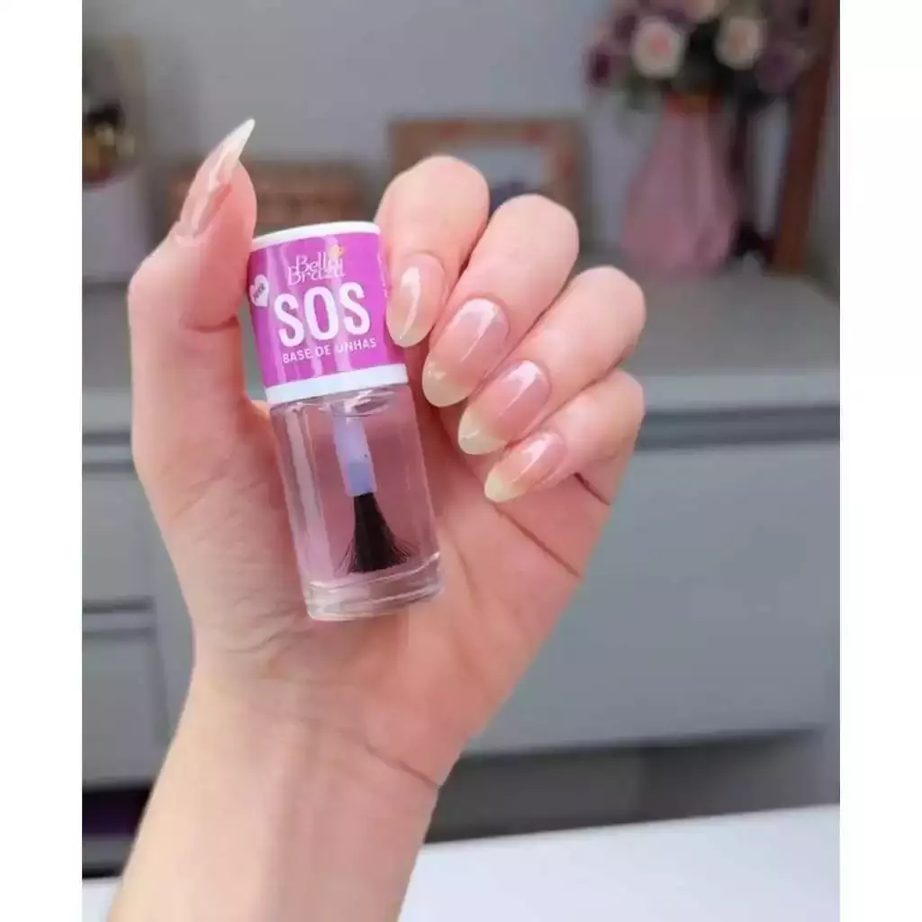 Restauração intensa e fortalecimento das unhas, a Base SOS foi desenvolvida especialmente para unhas fragilizadas após o uso de alongamentos com fibra ou gel.