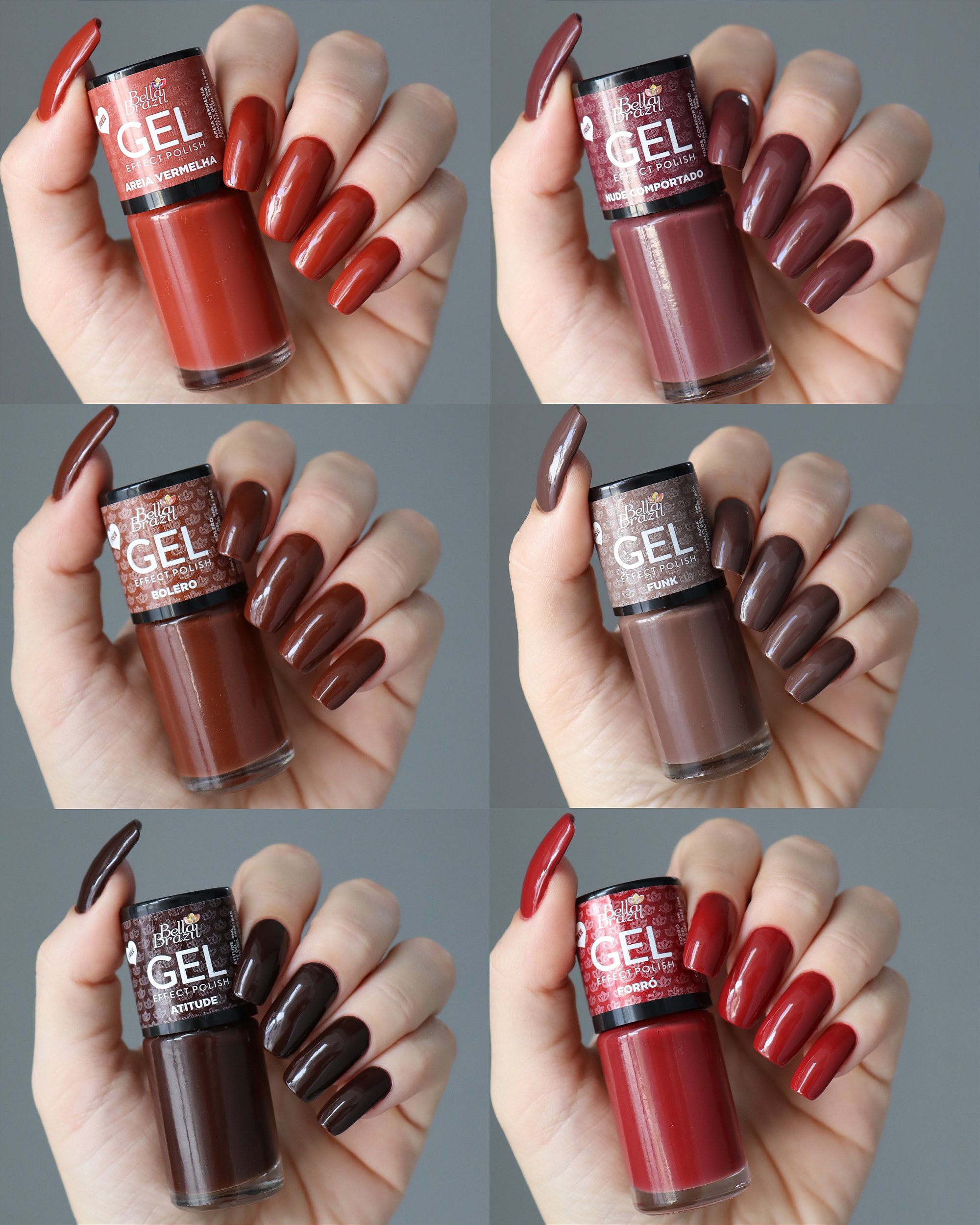 Contém 06 Esmalte Efeito Gel Bella Brazil 9ml