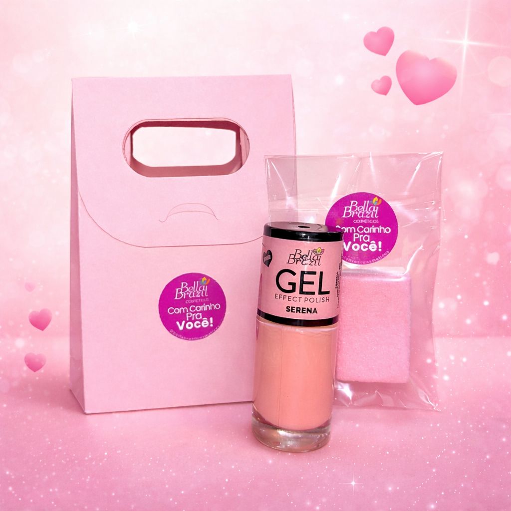 O kit contém 1 esmalte, 1 mini lixa bloco e 1 mini palito, perfeito para um momento de autocuidado e carinho.
