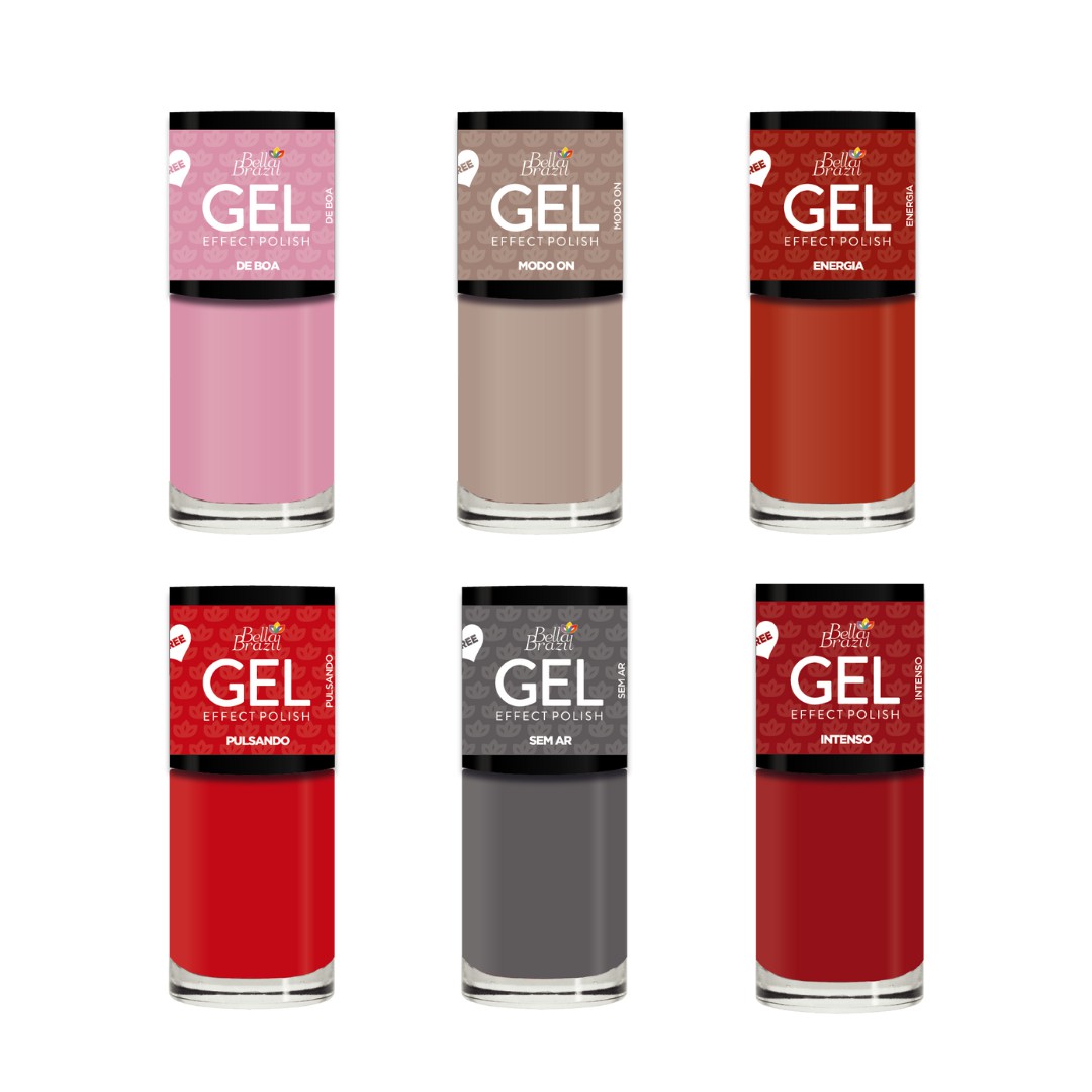 Contém 06 Esmalte Efeito Gel Bella Brazil 9ml